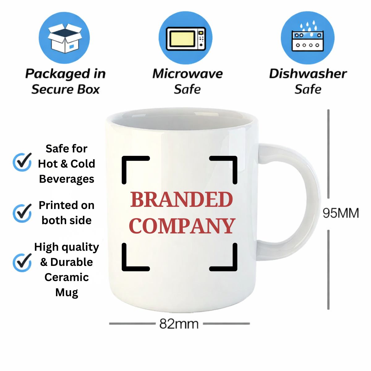 Perfect for company branding, employee gifting, events, or personalized gifts, this mug supports printing on both sides so your logo or artwork stays visible from every angle.